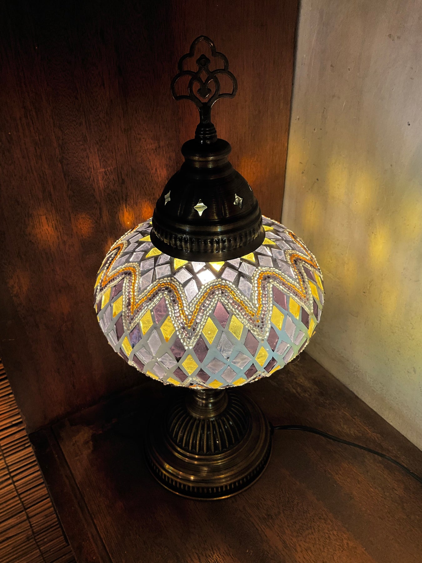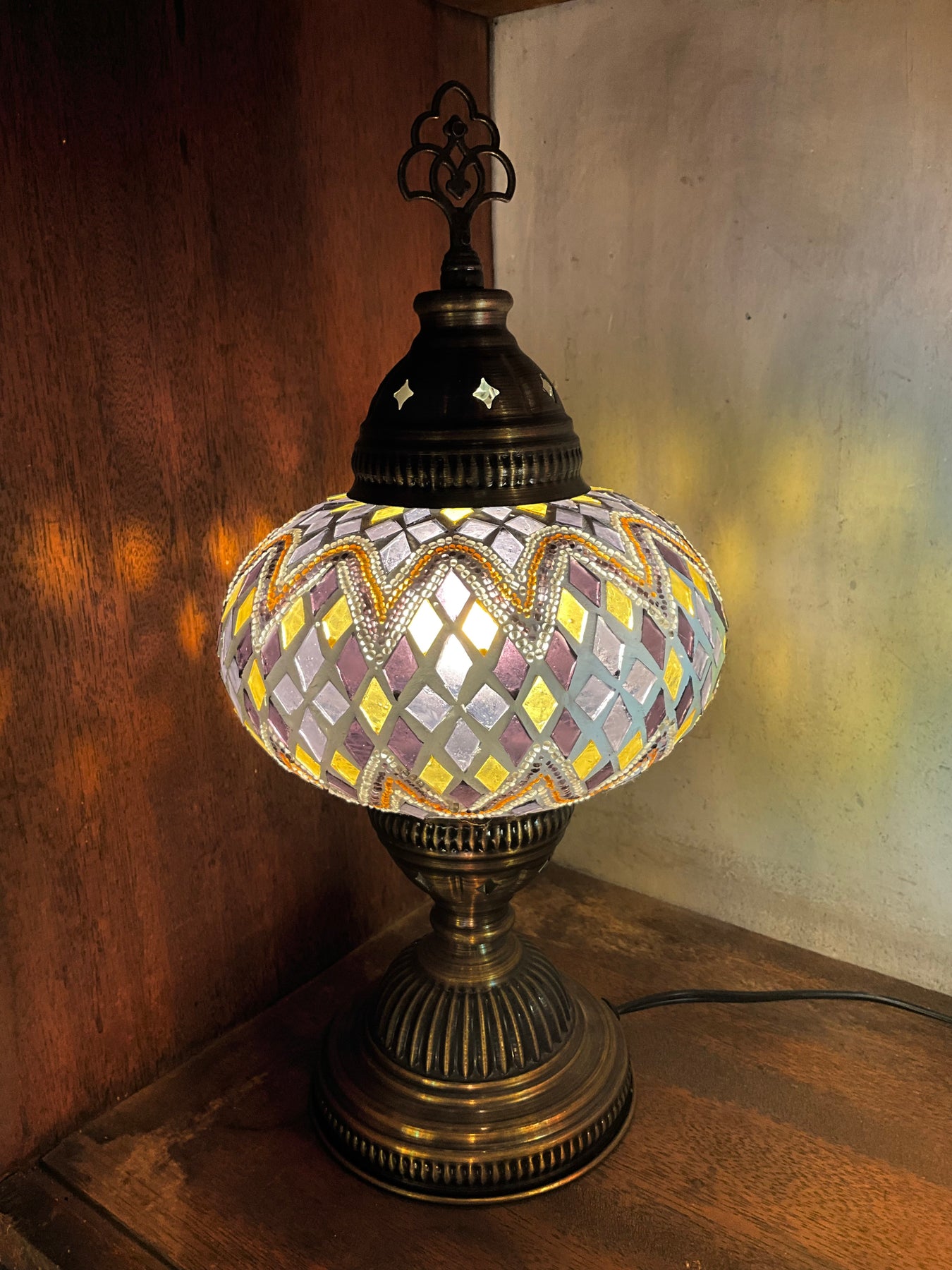 薄い紫ベースの落ち着きのあるスタンドランプです。紫とハニーの色の相性がよく幻想的な灯火です♡