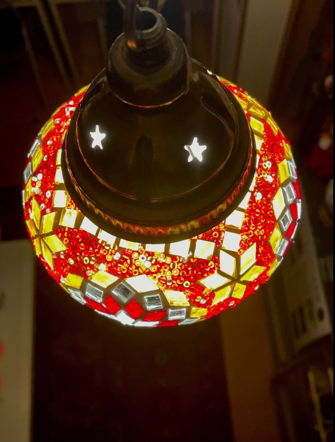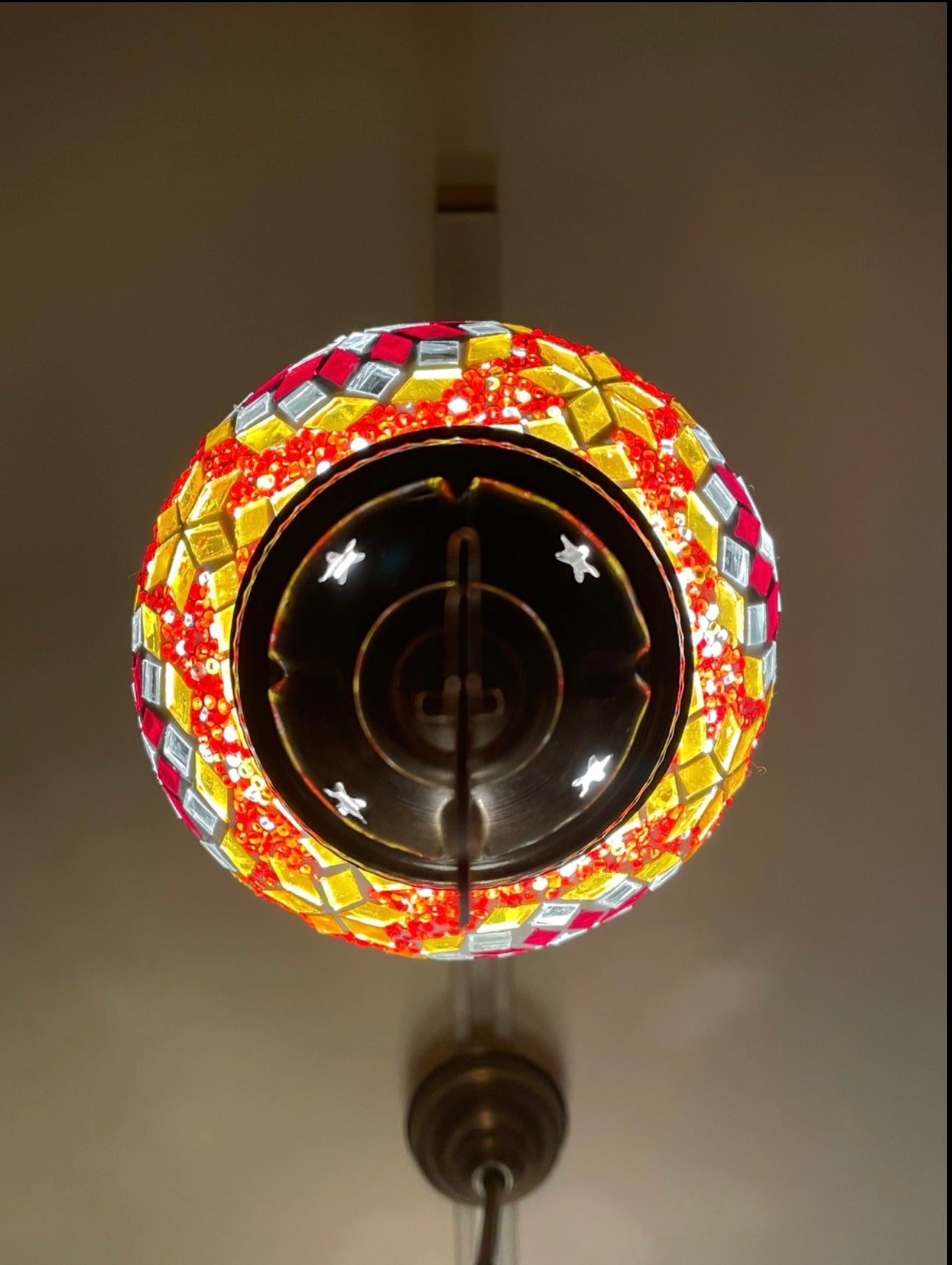 1本のチェーンで吊り下げられるスッキリしたランプ。温かみのあるお色でこれから鮮やかな赤色が元気を与えてくれます。点灯すると幻想的でエキゾチックな空間を作り出します。是非トルコランプの世界観をお楽しみください♡