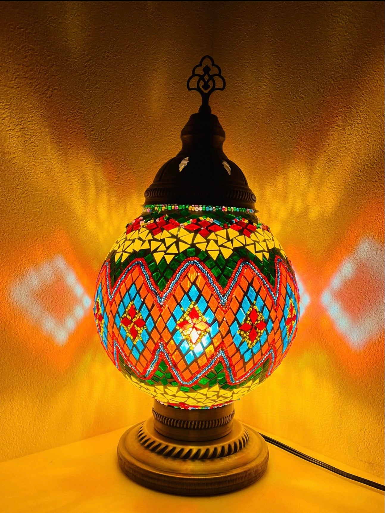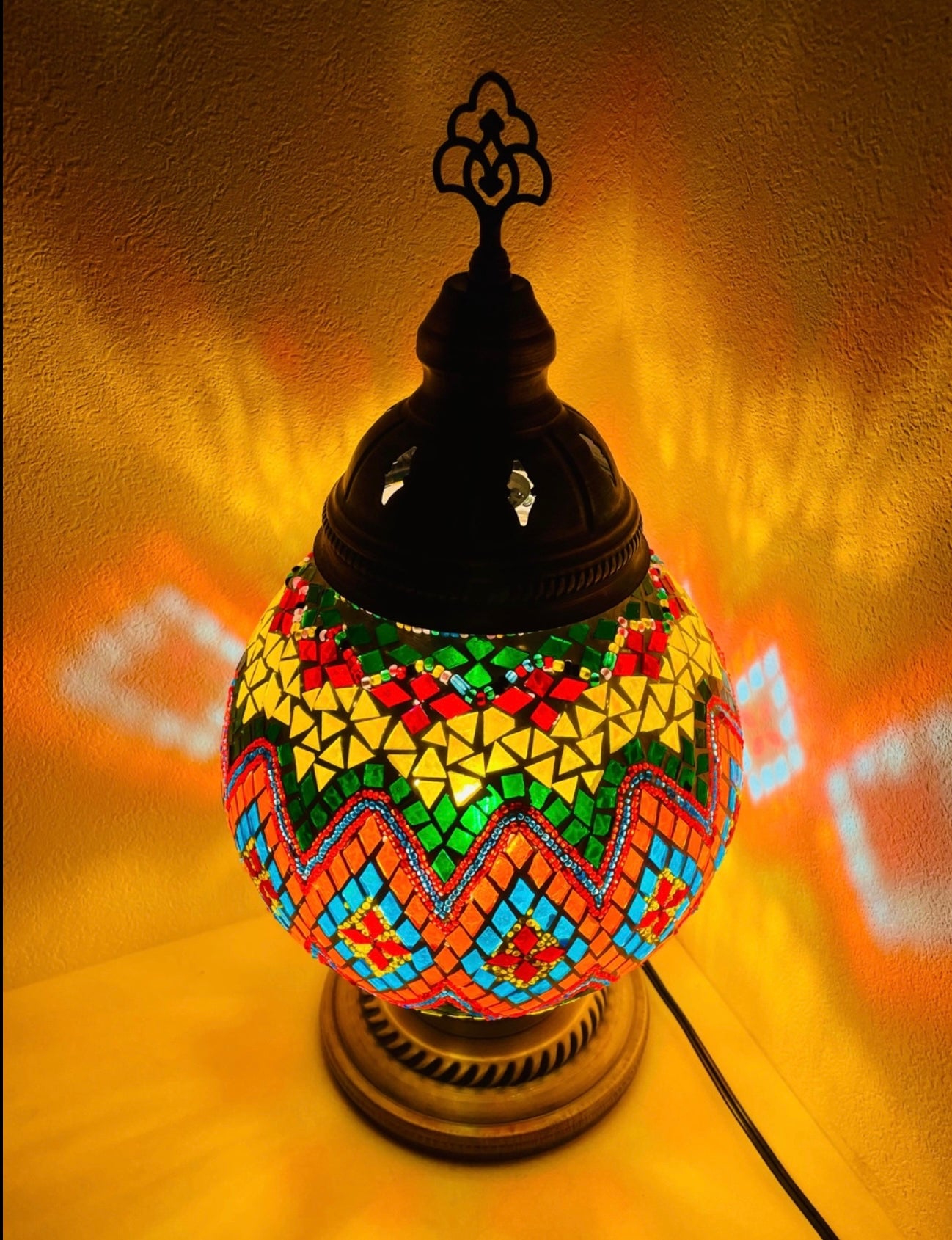 直径22cmの大きなまん丸ランプシェード。丸いフォルムが可愛い人気のスタンドランプです。メキシカンハットをイメージさせるような色合いが可愛い。こちらはペンダントランプに変更可能です。長さもお客様のご要望に合わせて調整致します。オリエンタルムード満点の一点物ランプです。お色違いもお作りします。